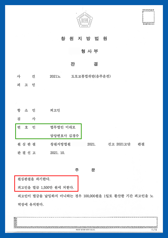 음주운전 벌금형 - 집행유예기간 중 음주운전 1심 징역형 선고 항소심 벌금형 선고사례[김경수 대표변호사]업무사례/형사소송 2021. 11. 27. 13:34